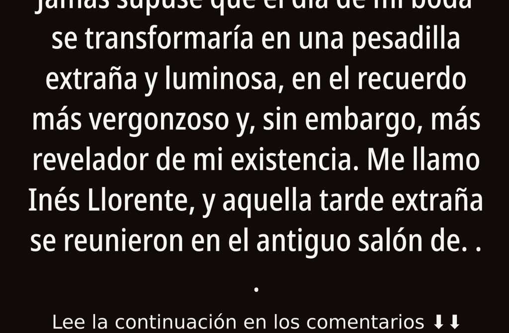 Jamás supuse que el día de mi boda se transformaría en una pesadilla extraña y luminosa, en el recuerdo más vergonzoso y, sin embargo, más revelador de mi existencia. Me llamo Inés Llorente, y aquella tarde extraña se reunieron en el antiguo salón de un hotel madrileño 204 invitados, entre lirios pálidos, copas de cristal, sonrisas de porcelana y reflejos de luz flotando como peces etéreos. Mi madre, Dolores, esperaba sentada en la tercera fila con un vestido azul celeste, sencillo pero limpio; las manos cuidadosamente entrelazadas sobre la falda, con ese orgullo silencioso y tembloroso que sólo las madres conocen bien en sus entrañas. Treinta años limpiando pisos ajenos por unos cuantos euros; estaba allí, y yo lo sabía, pero la familia de mi prometido, Tomás Ramírez, parecía no querer verlo ni en sueños, como si una niebla los separase del mundo real.