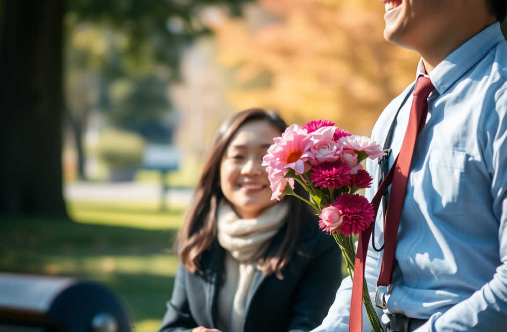 ¿Tiene prisa? preguntó de repente un chico en traje, con un enorme ramo de crisantemos burdeos, que se sentó a su lado.
