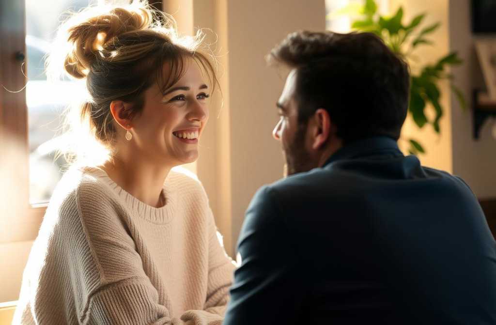*”No encontré mi blusa esta mañana”*, le dijo al hombre, sonriendo. *”Por eso me puse tu jersey.”*