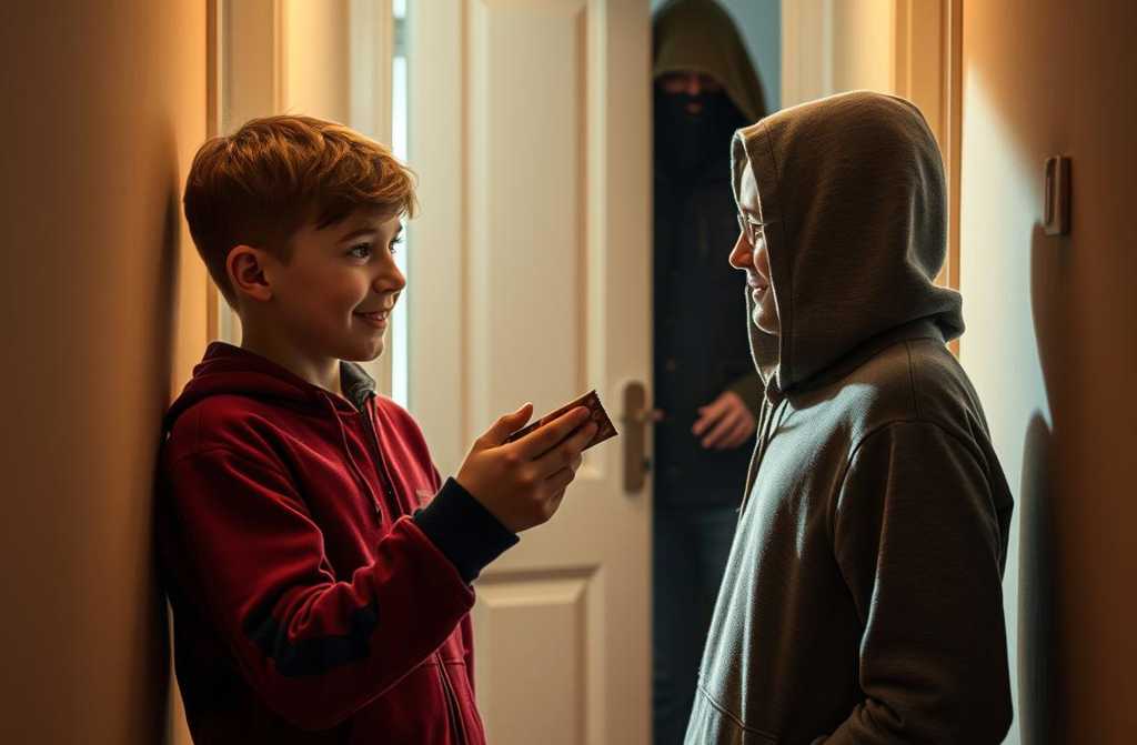 Justo cuando parece que perderá el conocimiento, algo inesperado ocurre: desde los arbustos salta una figura más pequeña y ágil, también con capucha, y se lanza contra el hombre. Él suelta la mochila y se desestabiliza; Mateo retrocede, paralizado, con las piernas aferradas al suelo como raíces. El tiempo parece detenerse; el niño siente que se queda atrapado bajo la lluvia, rodeado de árboles desnudos y arbustos marchitos.