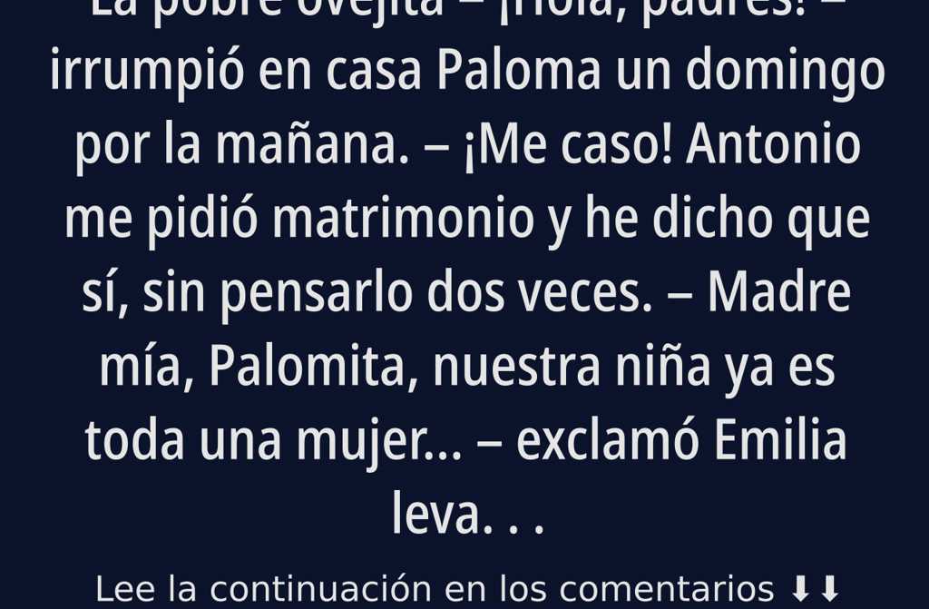Madre mía, Palomita, nuestra niña ya es toda una mujer exclamó Emilia levantando las manos, mientras miraba de reojo a su marido, Ramón, que permanecía serio y en silencio, probablemente procesando la noticia de su hija.