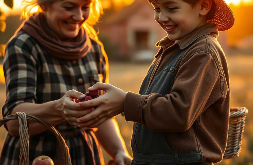 Terminaron la recolección al caer la noche. Las cestas estaban rebosantes, y Germán tuvo que cargar casi todas. En casa, su madre se movía ágil por la cocina, poniendo pasteles sobre el mantel y echando agua en tazas de porcelana.