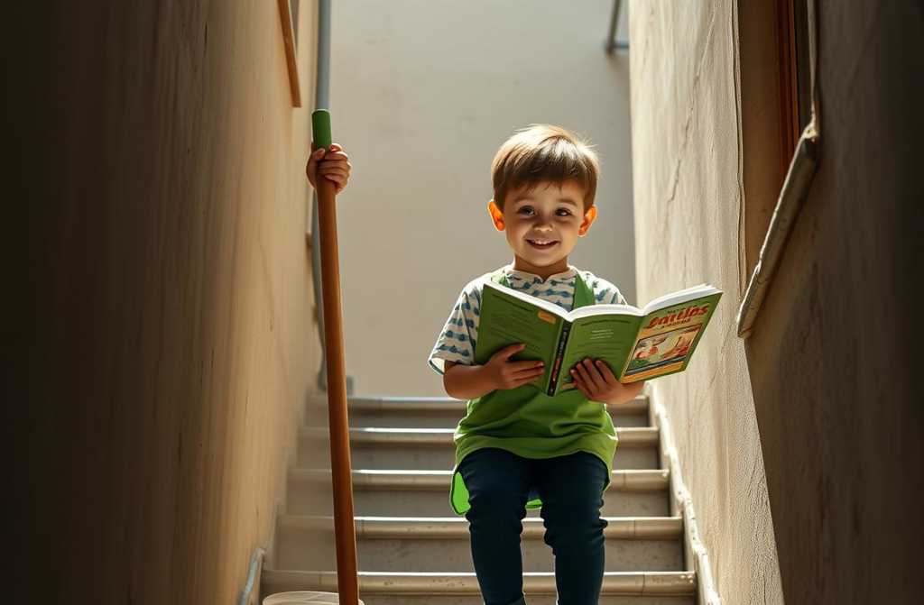 Después del cole la llevaba de la mano y se dirigían juntos a los edificios que ella cuidaba. En una mano llevaba la cola del fregón, en la otra los dedos cálidos de Álvaro. El chico ya conocía el ritmo: ella limpiaba los pasamanos, él abría los buzones y los cerraba con cuidado, como libros que esperan a ser leídos. Cuando se cansaban, se sentaban en una escalera y él leía en voz alta su libro favorito. Sus palabras llenaban el patio con una música sencilla y pura.