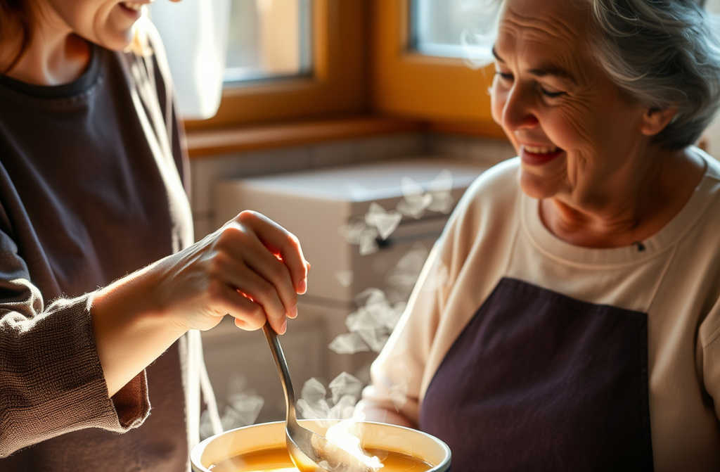 Levántate temprano y hazle una sopa a mamá. Vendrá de la casa de campo cansada y hambrienta. Que sea de pollo de granja, que su estómago está delicado; no aceptes nada de la tienda, nada de química.