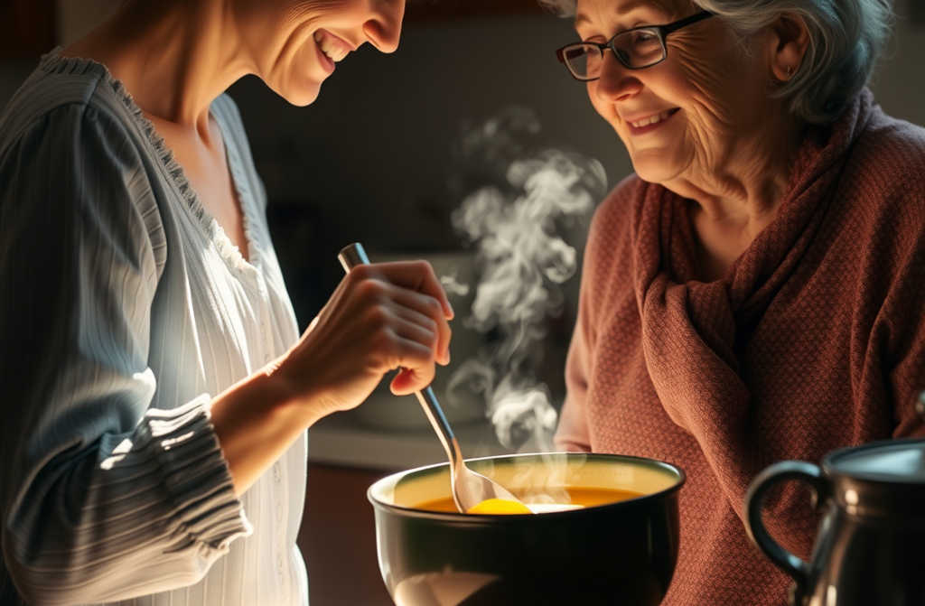 Begoña, ¿no lo entiendes? El médico le dijo a mamá que necesita una sopa caliente por la mañana. ¡El estómago está delicado!