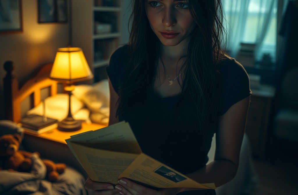 Su madre se sentó lentamente al borde de la cama. A la luz de la lámpara, sus manos temblaban.