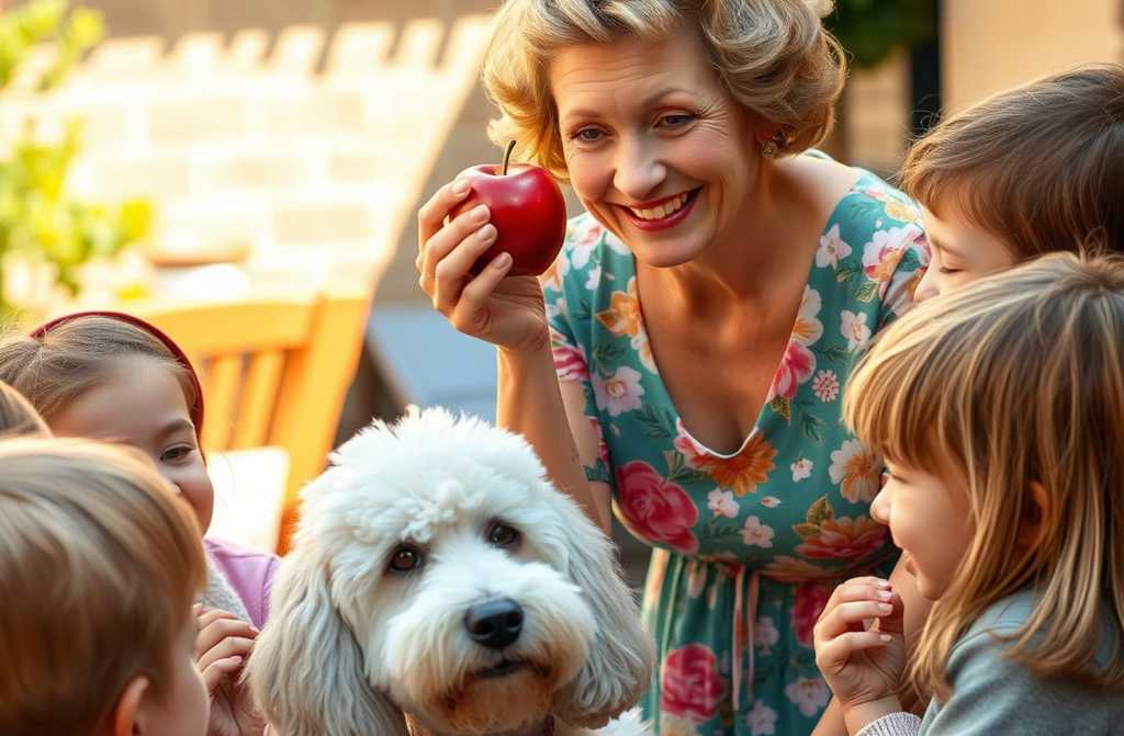 ¡Niños! ¡Venid! Tenéis una manzana roja esperándoos.