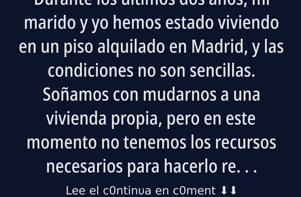 Durante los últimos dos años, mi marido y yo hemos estado viviendo en un piso alquilado en Madrid, y las condiciones no son sencillas. Soñamos con mudarnos a una vivienda propia, pero en este momento no tenemos los recursos necesarios para hacerlo realidad. El piso que alquilamos pertenece a una amiga de mi madre, y nuestra vida aquí está llena de complicaciones. Si algo no está en su sitio o si hacemos algo que no le gusta, es fácil que surjan discusiones inesperadas. Además, los vecinos no son muy amables, y nos recuerdan constantemente que somos inquilinos pasajeros y que pronto nos marcharemos.