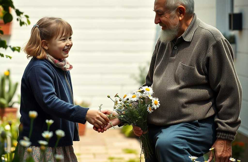Abuelito, ¿puedo arrancar tus florecitas? exclamó, al verlo.