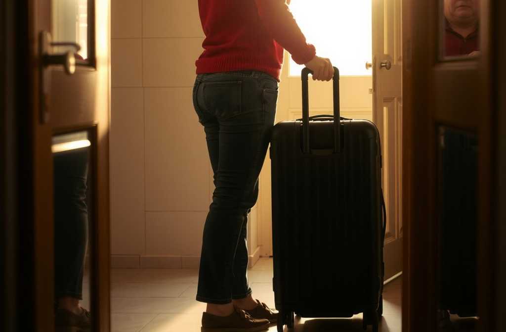 Cuando Víctor sale del cuarto, María está cerrando la maleta.