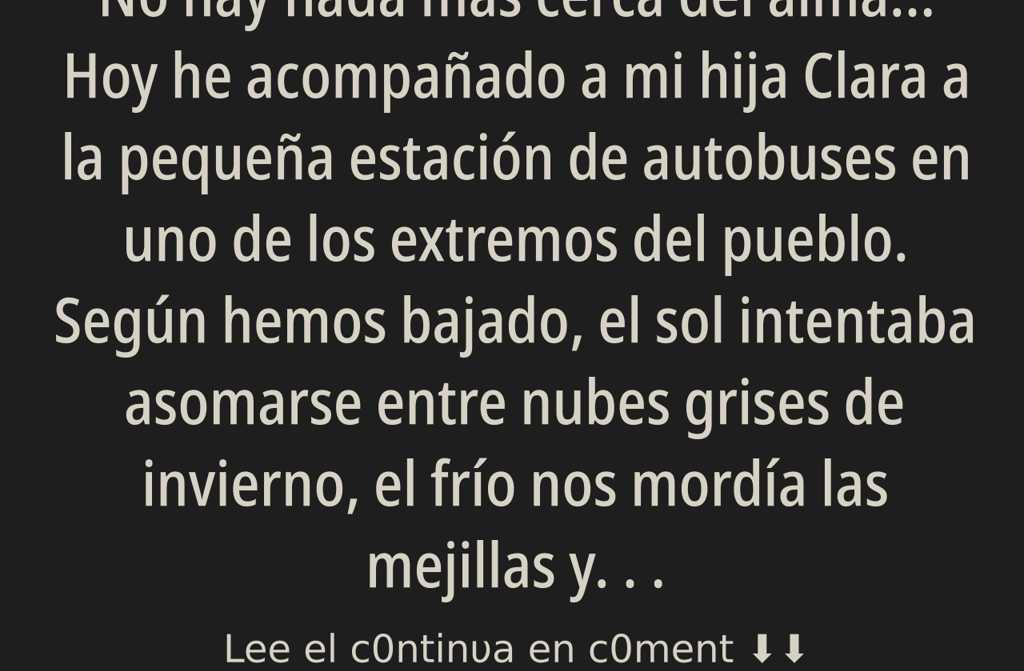 Hoy he acompañado a mi hija Clara a la pequeña estación de autobuses en uno de los extremos del pueblo. Según hemos bajado, el sol intentaba asomarse entre nubes grises de invierno, el frío nos mordía las mejillas y la blancura de la escarcha nos deslumbraba los ojos. Clara, con su bufanda hasta la nariz, caminaba pegada a mí.