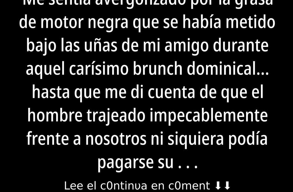 Me sentía avergonzado por la grasa de motor negra que se había metido bajo las uñas de mi amigo durante aquel carísimo brunch dominical… hasta que me di cuenta de que el hombre trajeado impecablemente frente a nosotros ni siquiera podía pagarse su propia tostada de aguacate.