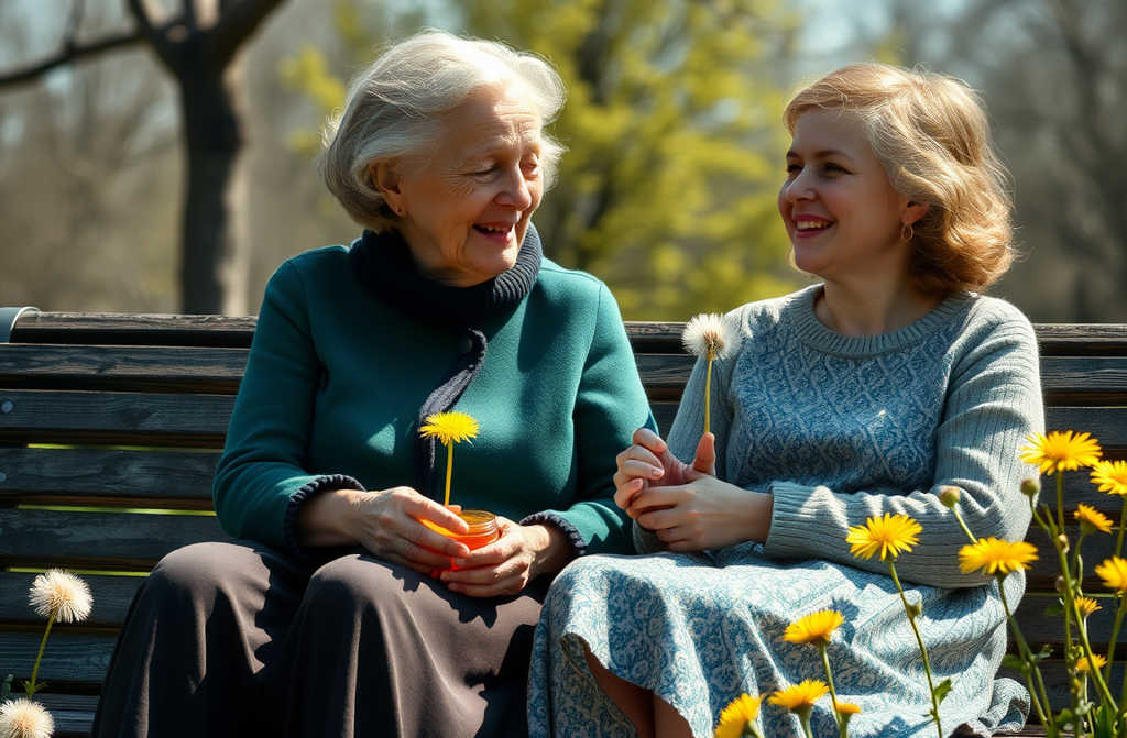 Después de esa charla sobre los dientes de león, acabaron preparando juntos una ensalada. Y Taís, por supuesto, merendó con pan y mermelada de dientes de león, encantada. Por la noche se fueron al parque: