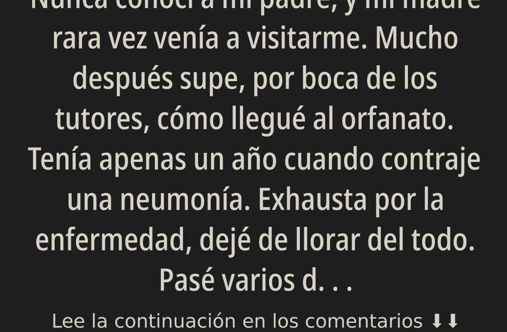 Nunca conocí a mi padre, y mi madre rara vez venía a visitarme. Mucho después supe, por boca de los tutores, cómo llegué al orfanato. Tenía apenas un año cuando contraje una neumonía. Exhausta por la enfermedad, dejé de llorar del todo. Pasé varios días tumbada en la cunita, en silencio, muriendo poco a poco mientras mi madre, apesadumbrada, bebía aguardiente en la habitación de al lado.