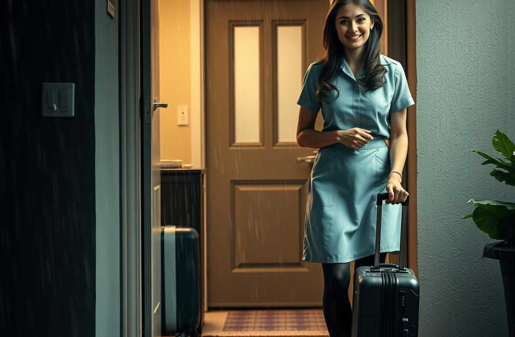 Begoña, con paso firme, tomó la manija de la maleta y cruzó el pasillo, poniéndose el abrigo. Su corazón latía como un tambor, pero sus manos no temblaban. Abrió la puerta principal; el vestíbulo olía a patatas fritas y humedad, pero para ella era el perfume de la libertad.