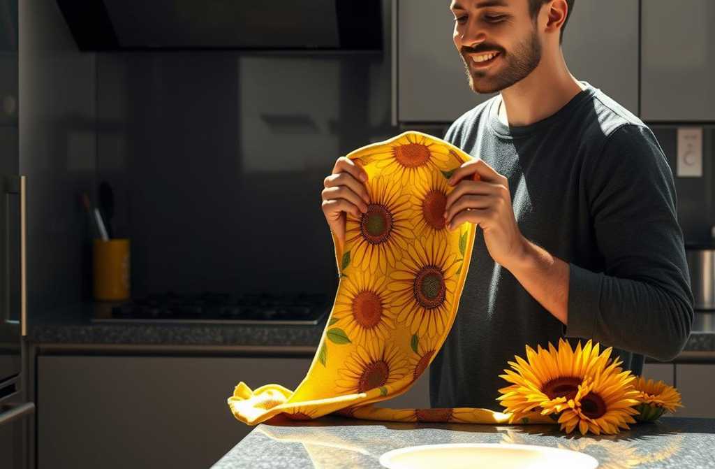 Lo primero que llama la atención es el color. Un estallido de tonos vivos, chillones, sin compasión. La encimera, impecable y lisa, está cubierta con un mantel de papel de color naranja brillante, lleno de girasoles gigantes. Los bordes cuelgan en ondas desiguales, ocultando los cajones superiores.