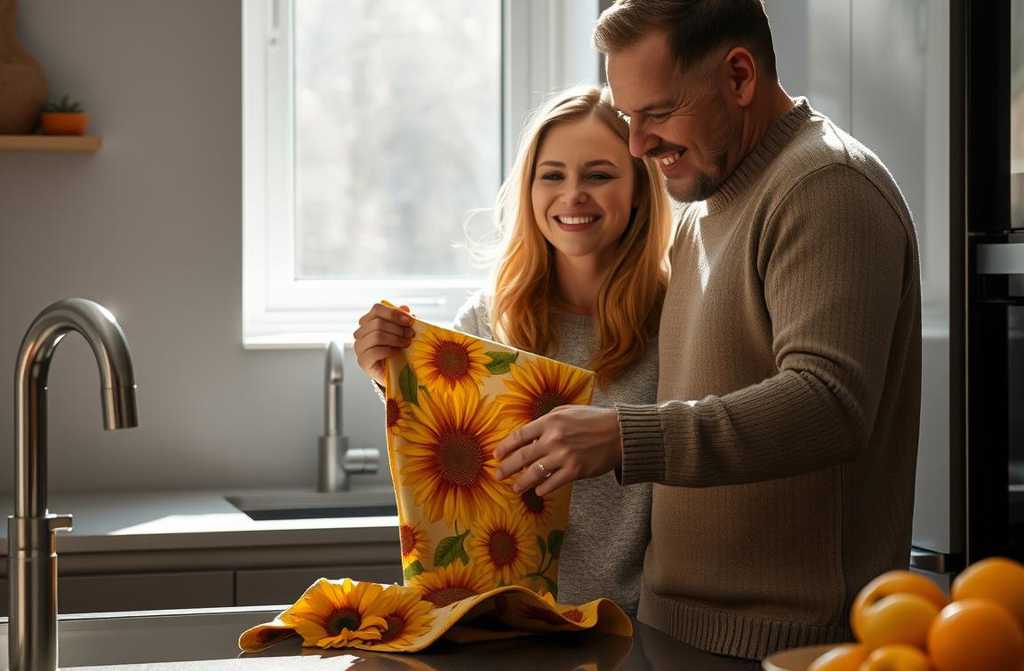 En primer plano dominaba el color. Un caos de tonalidades chillonas y desbordantes. La encimera de piedra, perfectamente lisa, estaba cubierta por un mantel de papel brillante naranja con enormes girasoles. Los bordes del papel colgaban en ondas desiguales, tapando los cajones inferiores.