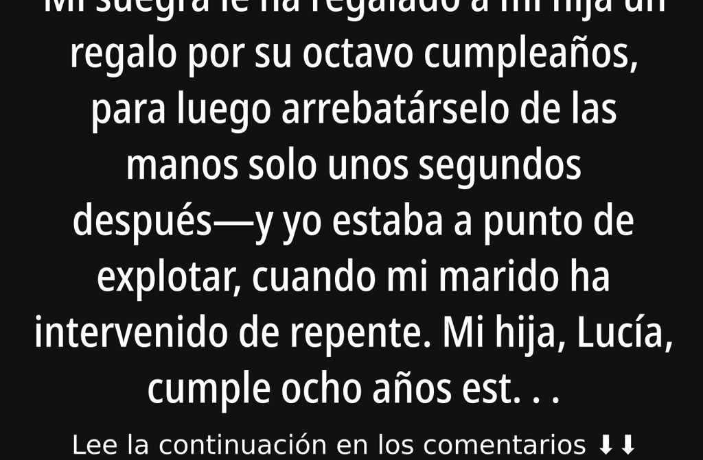 Mi suegra le ha regalado a mi hija un regalo por su octavo cumpleaños, para luego arrebatárselo de las manos solo unos segundos despuésy yo estaba a punto de explotar, cuando mi marido ha intervenido de repente.
