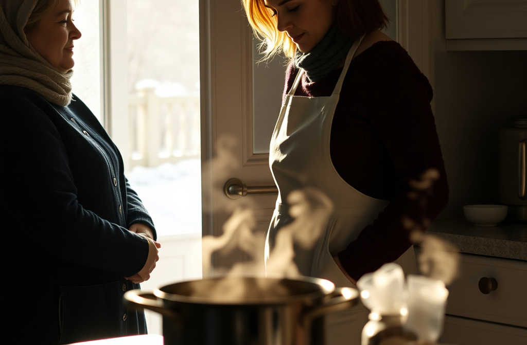 Ella, firme junto a la encimera, removía una olla enorme y se giró a mí con una sonrisa que ya se empezaba a torcer.
