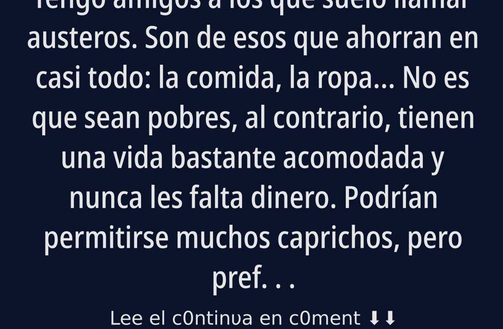 Tengo amigos a los que suelo llamar austeros. Son de esos que ahorran en casi todo: la comida, la ropa… No es que sean pobres, al contrario, tienen una vida bastante acomodada y nunca les falta dinero. Podrían permitirse muchos caprichos, pero prefieren gastar lo justo.
