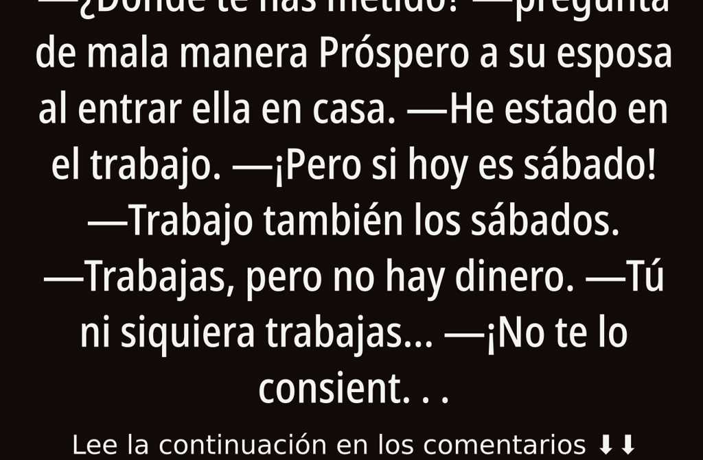 Próspero mira a su esposa con fijeza y les deja pasar. Se sientan en el salón, el agente toma nota de la denuncia.