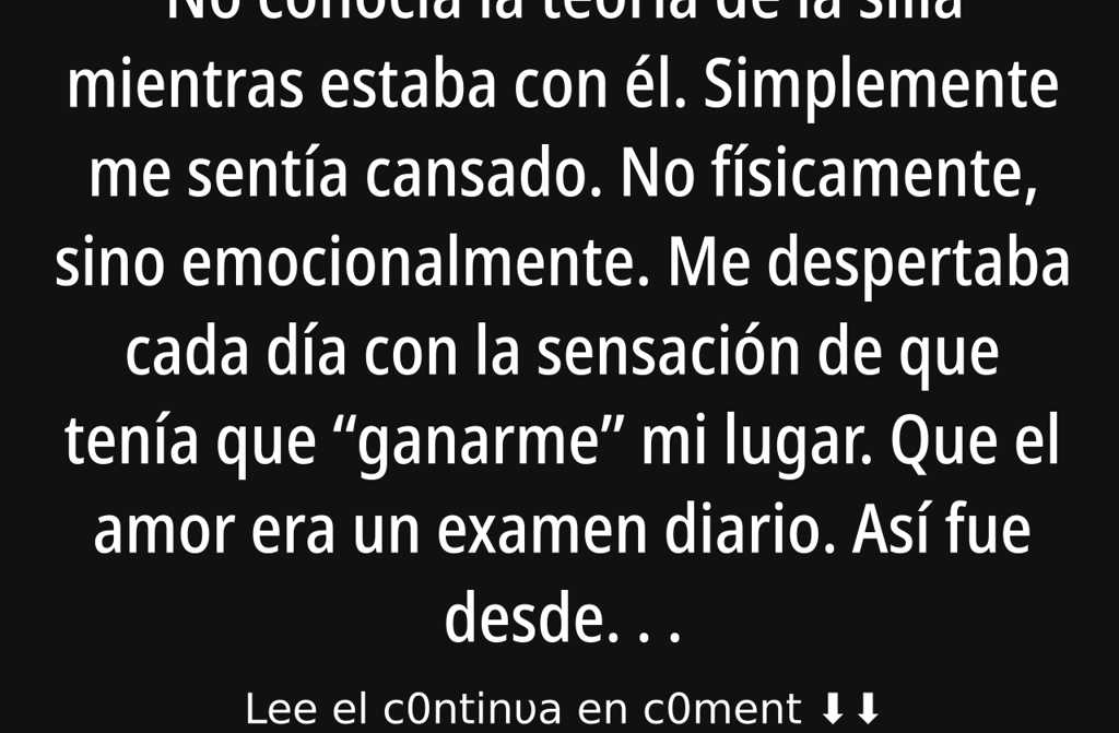 No conocía la teoría de la silla mientras estaba con él. Simplemente me sentía cansado. No físicamente, sino emocionalmente. Me despertaba cada día con la sensación de que tenía que ganarme mi lugar. Que el amor era un examen diario.