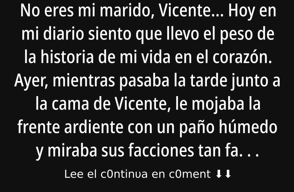 Hoy en mi diario siento que llevo el peso de la historia de mi vida en el corazón. Ayer, mientras pasaba la tarde junto a la cama de Vicente, le mojaba la frente ardiente con un paño húmedo y miraba sus facciones tan familiares, sentí que tenía que confesar lo nunca dicho.