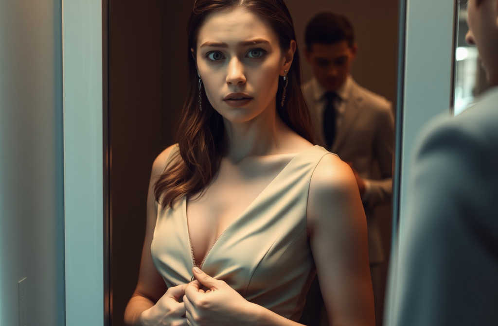 Estaba probándose el segundo cuando escuchó la voz familiar de su marido en el probador de al lado: