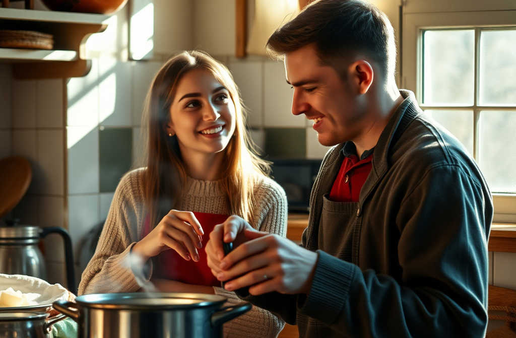¡Amor, ya has bajado! sonrió Alberto, cocinando.