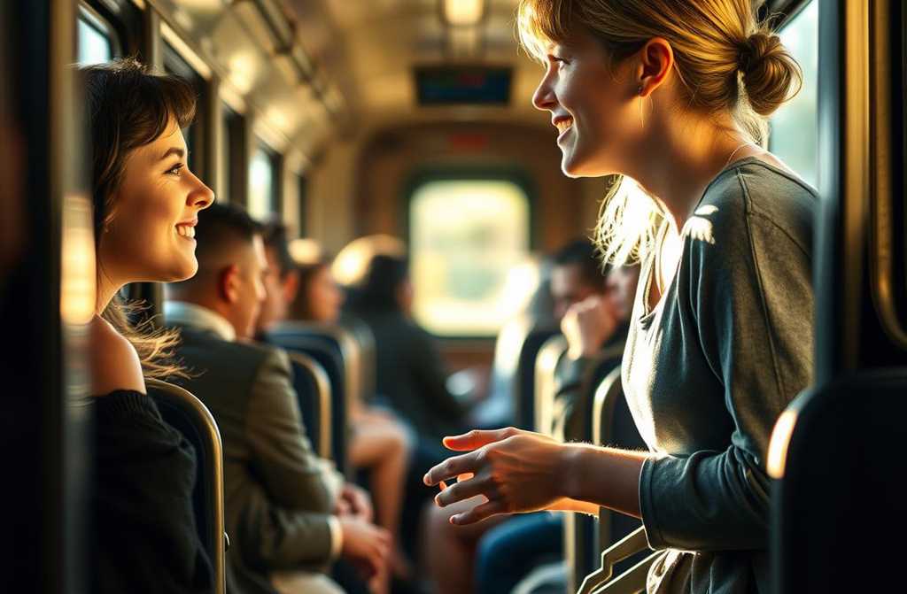 el tren de cercanías tembló al arrancar, dejando que el olor a aceite y polvo se mezclara con una ráfaga de aire fresco que entró por la ventanilla. La mirada de una mujer, viva y curiosa, se posó en los dos jóvenes que estaban sentados frente a ella. No dejaba de esbozar una sonrisa aprobadora.
