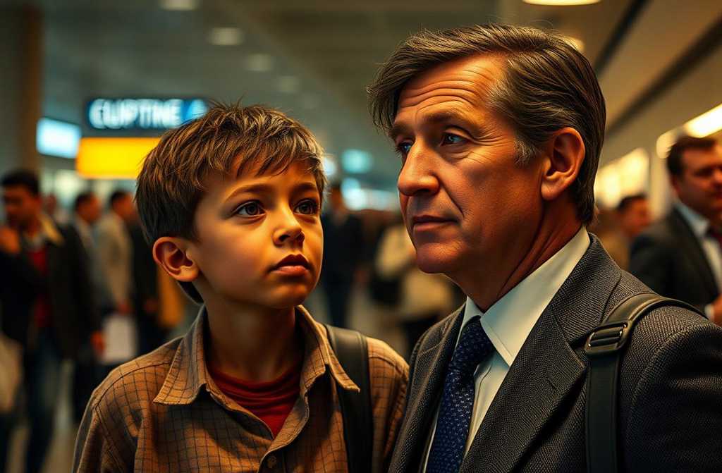 Ese hombre era Javier Mendoza, un inversor de capital riesgo de 46 años, natural de Salamanca. Su vida giraba en torno a la velocidad: decisiones rápidas, negocios rápidos, vuelos rápidos. Tenía un billete directo a Barcelona, donde le esperaba una reunión clave con inversores. Javier estaba acostumbrado a ignorar el caos de los aeropuertos, pero algo en la voz del chico lo detuvo en seco. La gente murmuraba, algunos se reían, otros fruncían el ceño. Que un niño sin hogar dijera locuras no era extraño en Madrid, pero la intensidad de su advertencia sonaba real.
