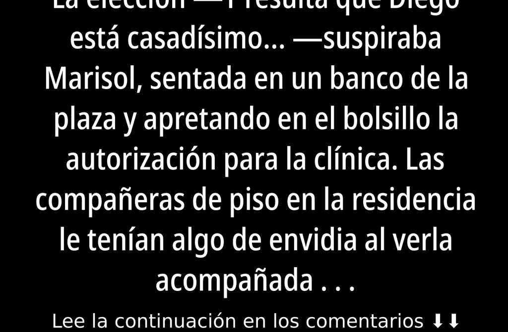 Y resulta que Diego está casadísimo suspiraba Marisol, sentada en un banco de la plaza y apretando en el bolsillo la autorización para la clínica.