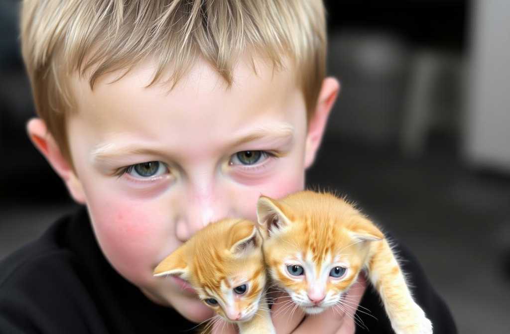 Él alzó un gatito pelirrojo como el sol. El animal, al ver aquel rostro temible, no se asustó.