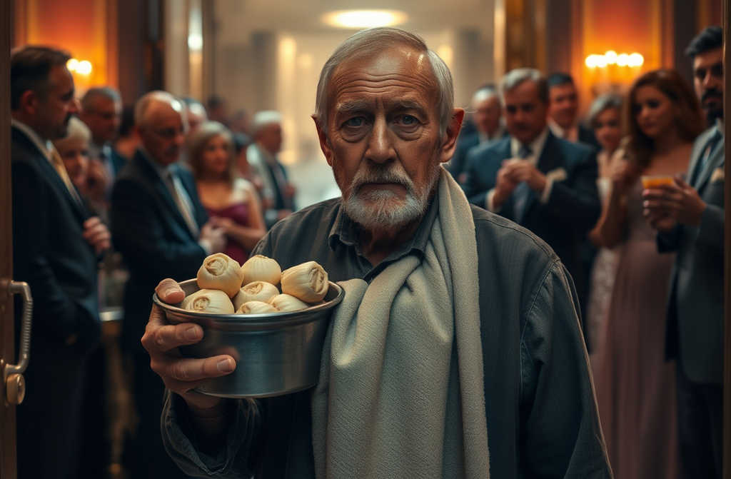 Su padre se quedó al borde, avergonzado, con su chaqueta gastada y los zapatos llenos de polvo.