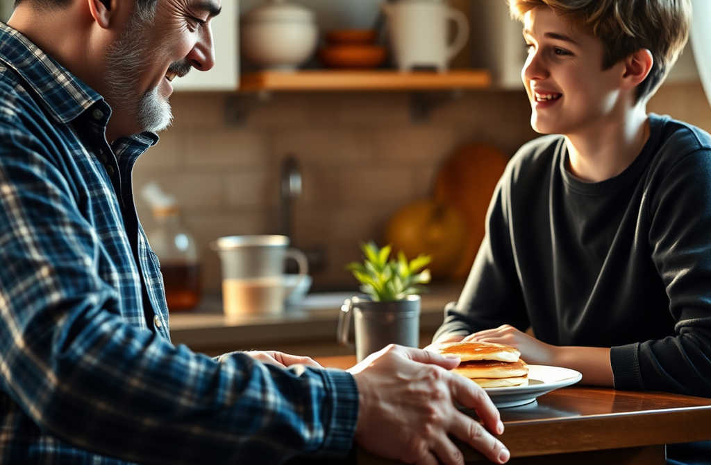 Por las mañanas, la cocina se llenaba del aroma a tortitas con miel el desayuno favorito de Martín. Alfonso las apilaba con cuidado en el plato y se lo dejaba frente a él.