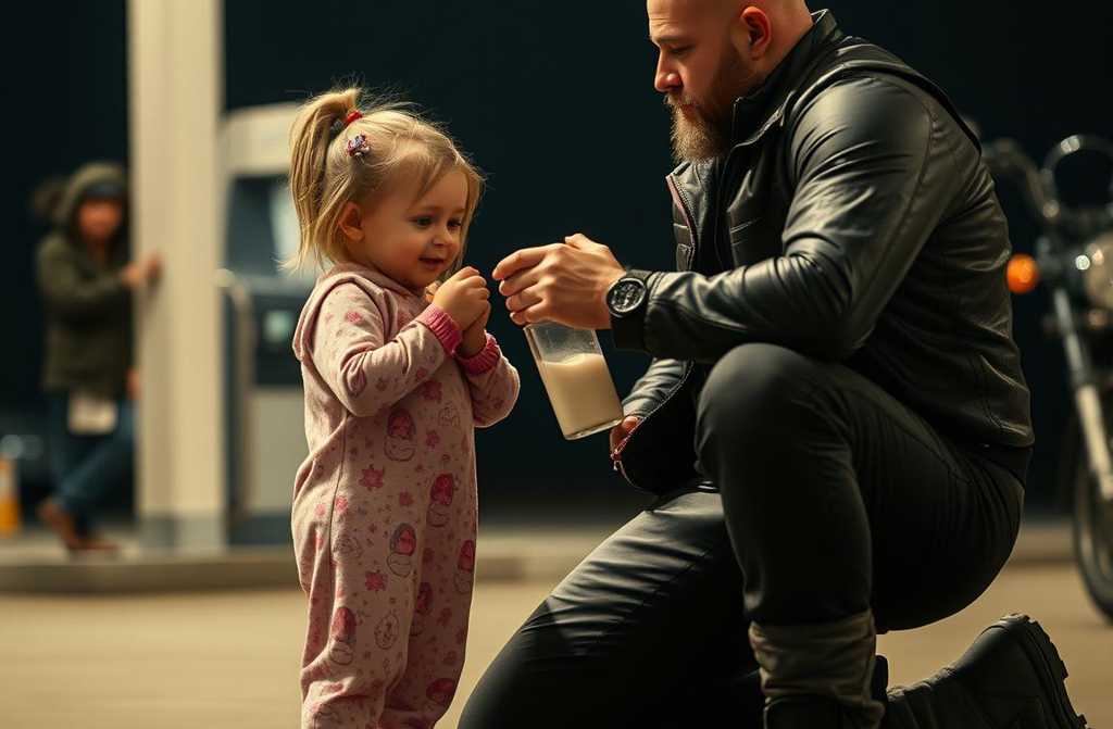Yo había parado a repostar después de una ruta de 600 kilómetros, cansado y con ganas de llegar a casa, pero esa niñita temblaba mientras me alargaba esa bolsa de cambio, eligiéndome a míun biker de aspecto intimidanteen lugar de a la pareja bien vestida que repostaba dos surtidores más allá.