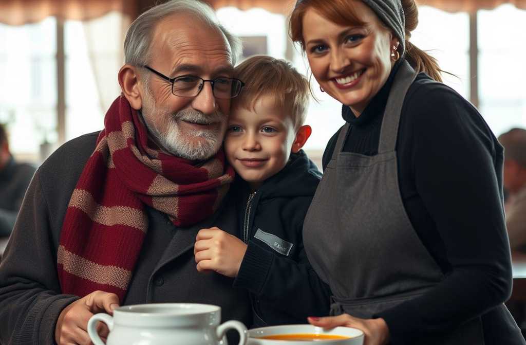 Ven, trae al hambriento, Santiago, abrió Pilar la puerta de la trastienda, con dos mesas, una cama y un armario. ¿Qué esperáis? ¿Frío? Vamos a servir sopita. Siéntate, chiquitín. Aquí tienes una silla, tan pequeña como un oso.
