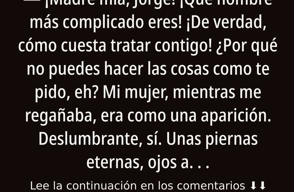 Yo, en cambio, nunca he destacado por mi físico. Casi una cabeza más bajo que mi mujer, parecía un tonel pequeño, con brazos largos, piernas cortas y ya la coronilla clareando. Lo único bonito que tenía eran los ojos: vivos, inteligentes, como si pudieran desarmar en dos miradas a cualquiera. Era raro vernos juntos: ella, una diosa caprichosa; yo, ese que la entendía hasta cuando no decía nada.