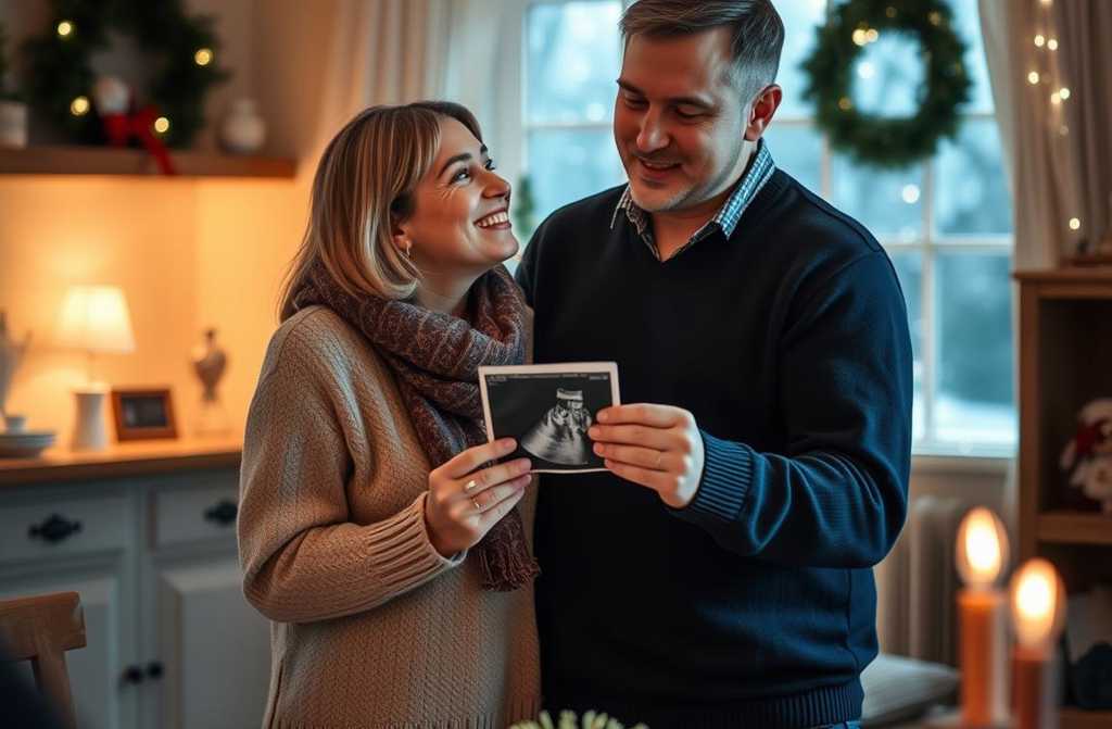 Mientras tanto, Almudena y Miguel esperaban a los invitados y se preparaban para la celebración. El ambiente estaba lleno de risas y sonrisas. Almudena se acercó a Miguel, sacó una foto del ecografía y le susurró:
