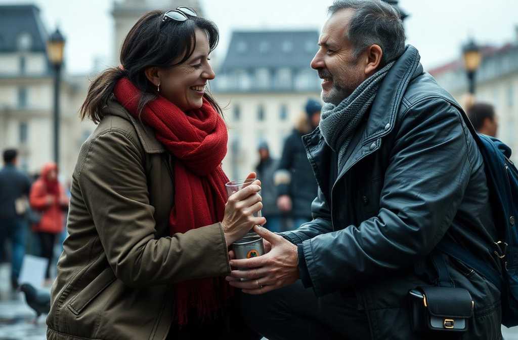 El cielo dejaba caer una fina llovizna, como un delicado telón de agua, mientras la gente pasaba con paraguas abiertos y la mirada baja. Pero nadie prestó atención a la mujer vestida con un traje beige que, en mitad del cruce, se arrodilló. Su voz temblaba. “Por favor… cásate conmigo”, susurró, sosteniendo una cajita de terciopelo. ¿El hombre al que le hacía la propuesta? Llevaba semanas sin afeitar, vestía un abrigo remendado con cinta adhesiva y dormía en un callejón a solo una manzana de la Bolsa de Madrid.