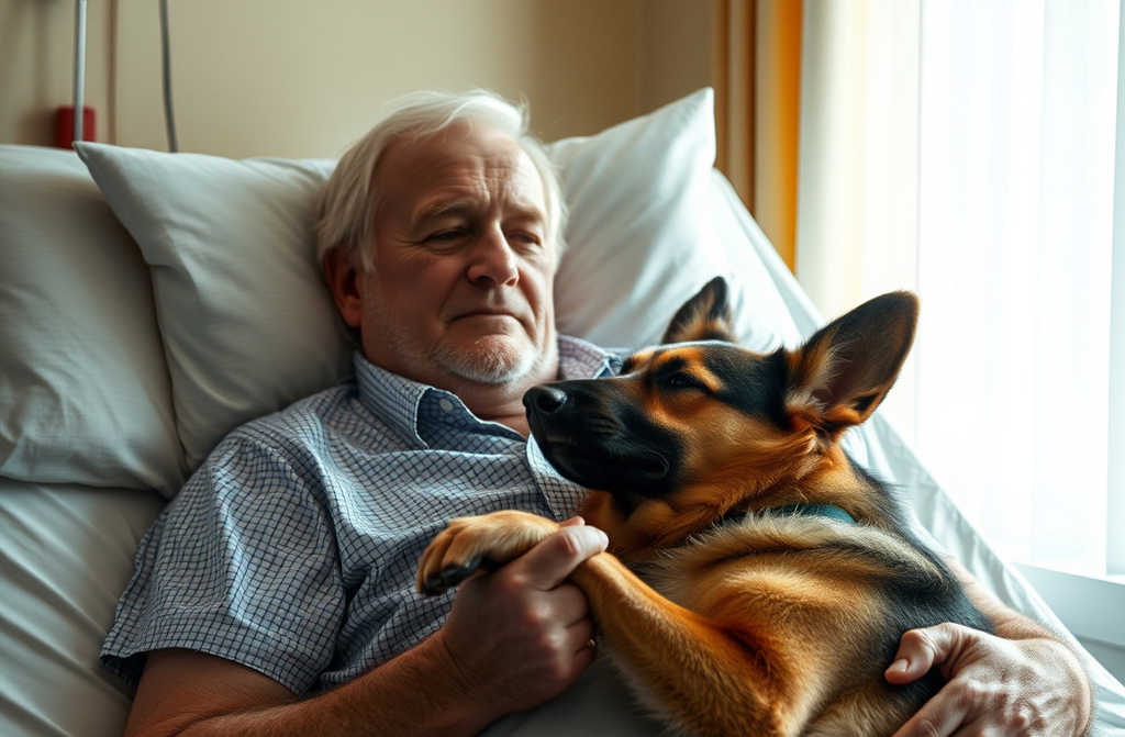 Entre los dos subieron al pesado pastor alemán y lo acomodaron junto a Ernesto. En cuanto Trueno se apoyó en él, el monitor cardíaco se estabilizó, lo suficiente para que todos sintieran un atisbo de esperanza.