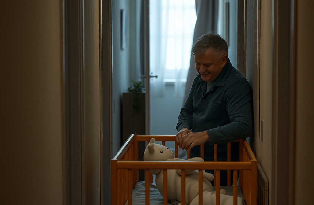 La mujer se sienta en el sofá, acariciando su vientre. A veces suelta un sollozo leve, sin perturbar el ambiente. Cuando Luis atornilla el último tornillo y ajusta el respaldo de la cuna, el aire de la habitación cambia, como si se descargara una tensión.