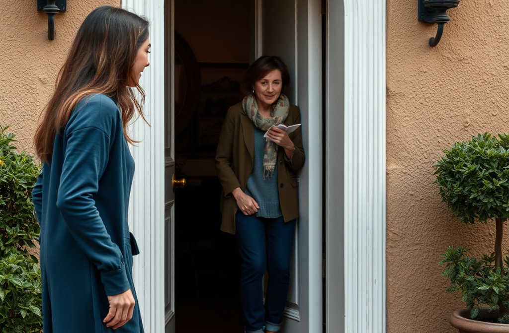 Carmen estaba sola en el piso; su marido, Javier, había ido a casa de un amigo para ayudarle con unos arreglos en el jardín. Volvió a la puerta y miró otra vez por la mirilla, observando mejor a la desconocida.