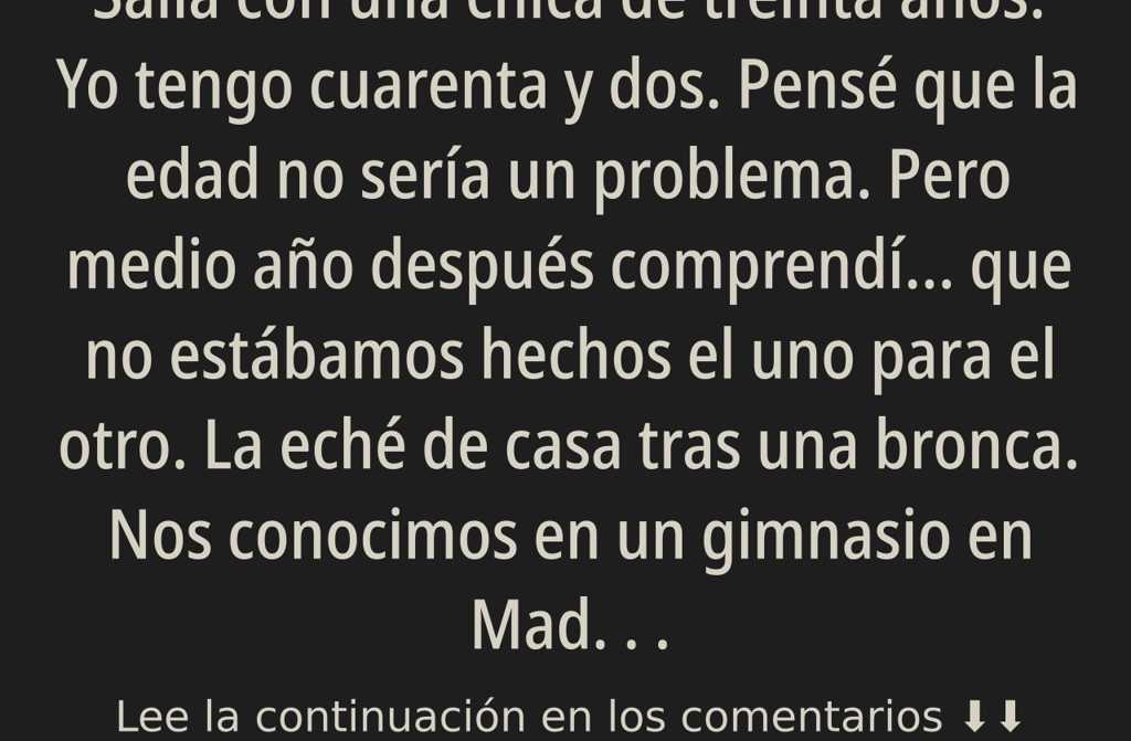 Salía con una chica de treinta años. Yo tengo cuarenta y dos. Pensé que la edad no sería un problema. Pero medio año después comprendí que no estábamos hechos el uno para el otro. La eché de casa tras una bronca.