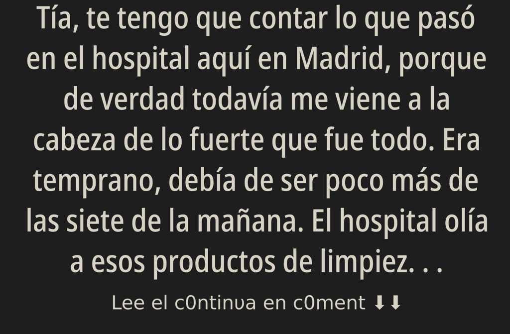 Tía, te tengo que contar lo que pasó en el hospital aquí en Madrid, porque de verdad todavía me viene a la cabeza de lo fuerte que fue todo.
