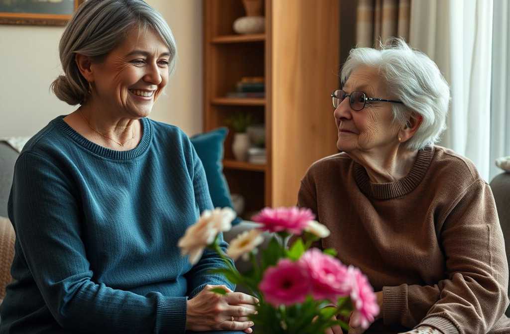 ¡Hola, mamá! He tenido un día maravilloso y quiero compartirlo contigo. Este es mi regalo la joven depositó unas flores sobre la mesa.