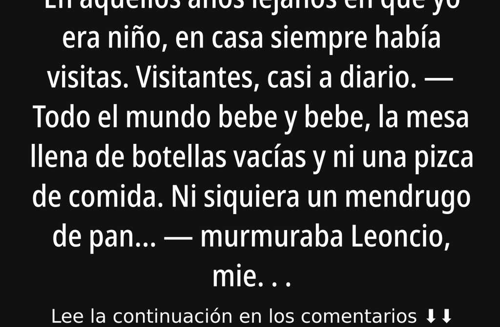 Todo el mundo bebe y bebe, la mesa llena de botellas vacías y ni una pizca de comida. Ni siquiera un mendrugo de pan… murmuraba Leoncio, mientras repasaba la mesa cubierta solo por colillas y una lata vacía de sardinas. No quedaba nada más.
