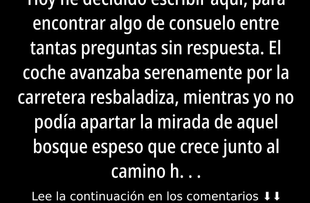 Hoy he decidido escribir aquí, para encontrar algo de consuelo entre tantas preguntas sin respuesta. El coche avanzaba serenamente por la carretera resbaladiza, mientras yo no podía apartar la mirada de aquel bosque espeso que crece junto al camino hacia Toledo. Dentro del vehículo, mi hijo, Rodrigo, conducía en silencio; a su lado, su esposa, Teresa, en el asiento del copiloto. Mis pensamientos giraban sin cesar¿cómo podía Rodrigo, mi propio hijo, llevarme a una residencia de ancianos? ¿En qué fallé al criarlo? Tal vez no supe quererle como debía, aunque siempre lo di todo por él, intenté regalarle la infancia más feliz posible. Pero Rodrigo siempre tuvo su manera de ver el mundo.