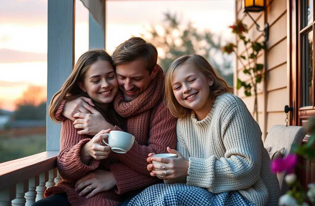 Almudena se sentó en una vieja banca de madera frente a su casa, tomando un té de hierbas aromático. Daniel se acercó sigilosamente, la abrazó por detrás y le dio un beso en la mejilla.