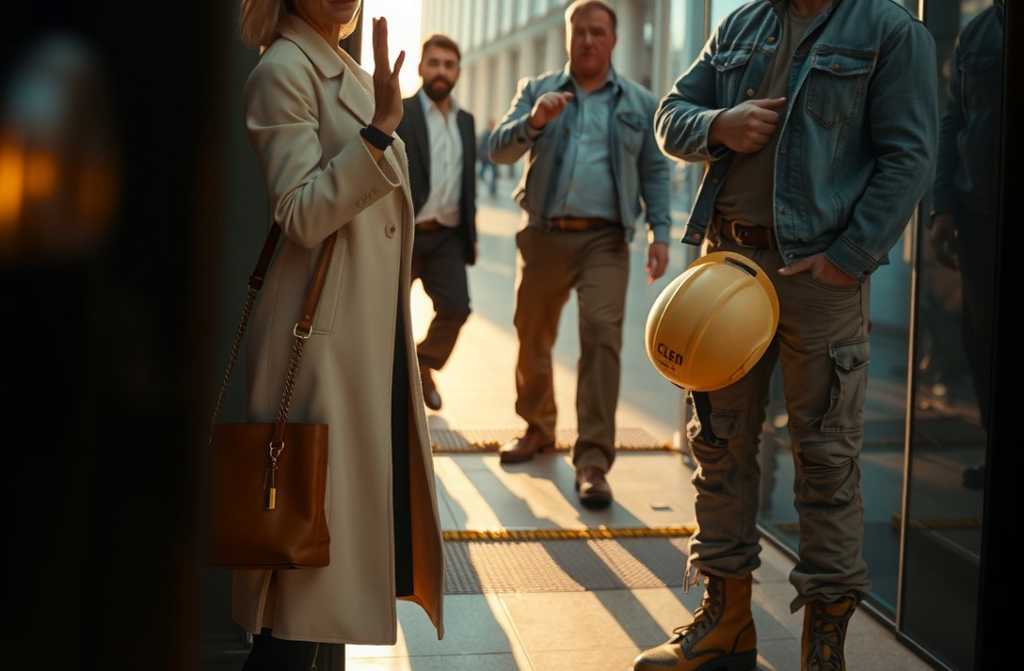 La luz del atardecer se doblaba en los vitrales de la Torre de Cristal, disolviendo los colores sobre el asfalto de Paseo de la Castellana. Justo a las puertas del edificio relucía una mujer elegante; su abrigo de lana virgen y bolso de piel costaban más que un mes en Ibiza. Fruncía la nariz con desprecio, mirando de arriba abajo al hombre que tenía ante sí: su mono de trabajo manchado de mortero, botas recias cubiertas de polvo, el casco amarillo aferrado bajo el brazo.